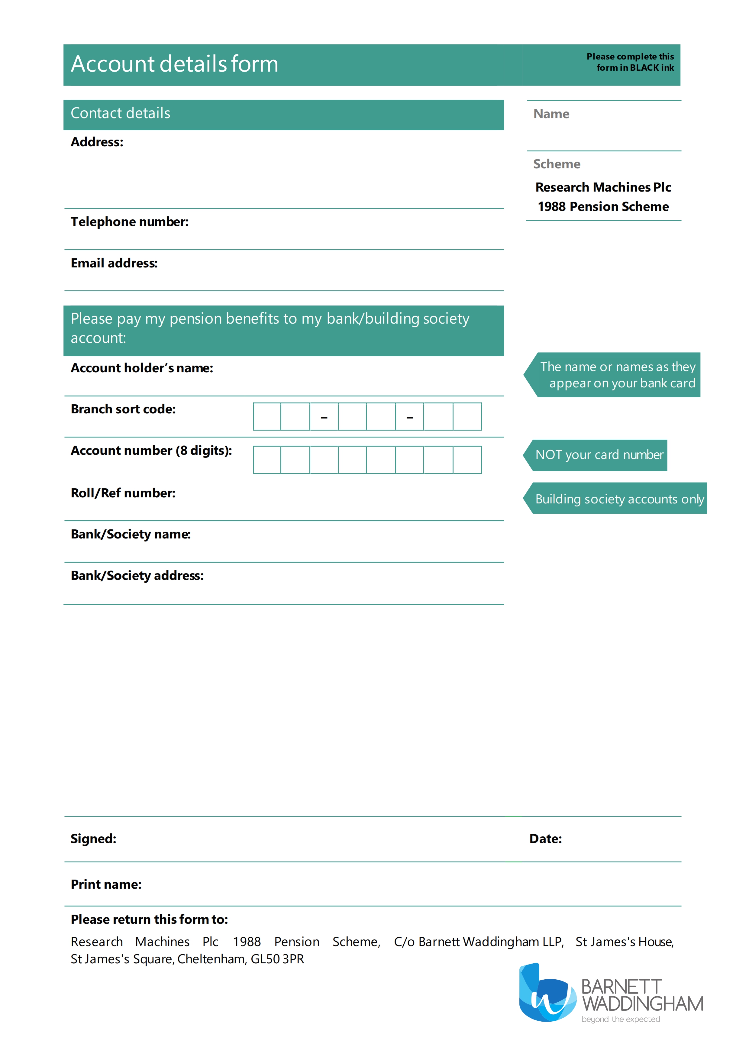 If you are receiving a pension from the scheme, you should inform Barnett Waddingham if you wish to change the bank account your pension is paid into via the Clarity self-service site or this form.