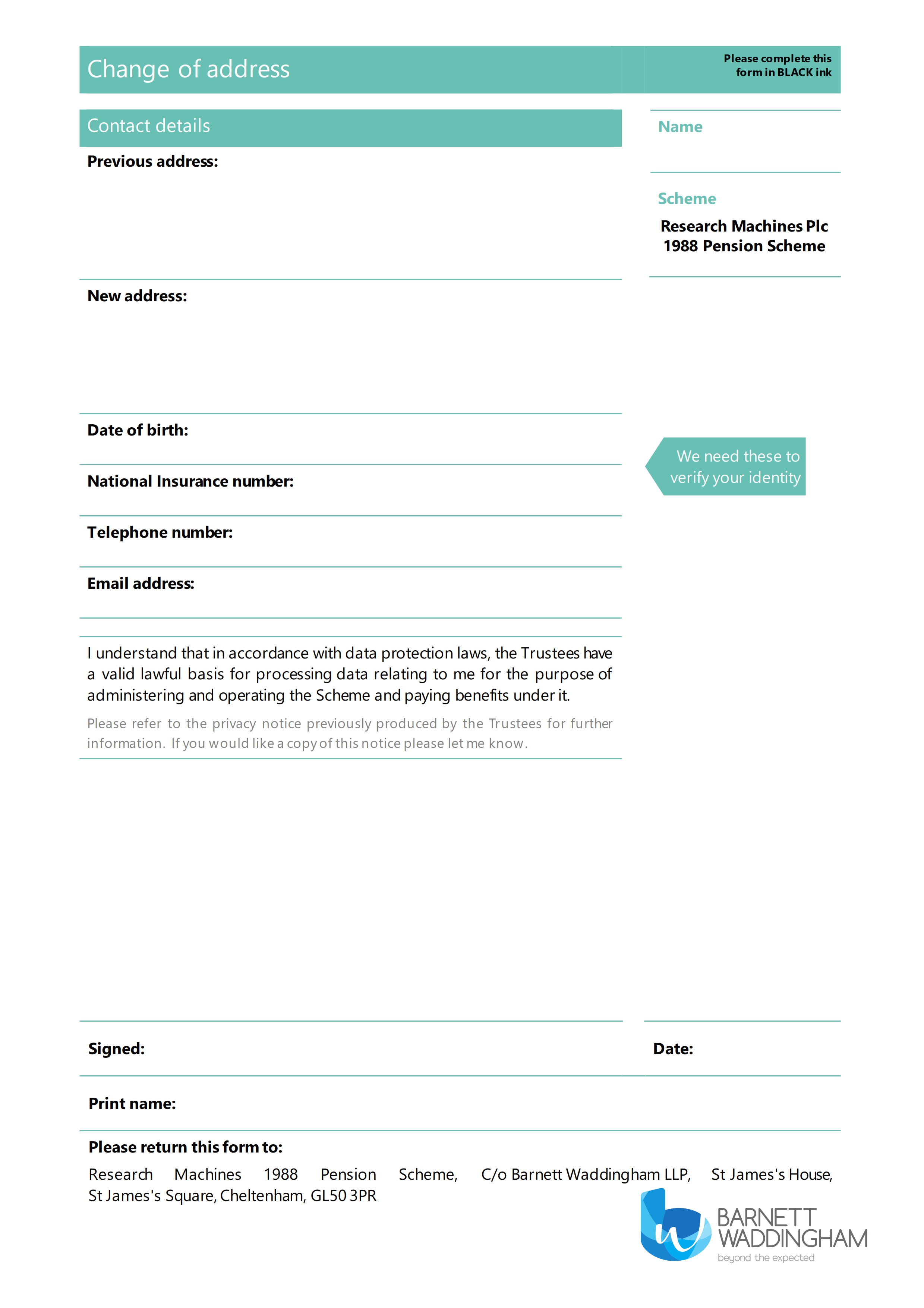 You can inform Barnett Waddingham of any changes to your address via the Clarity self-service site or this form.