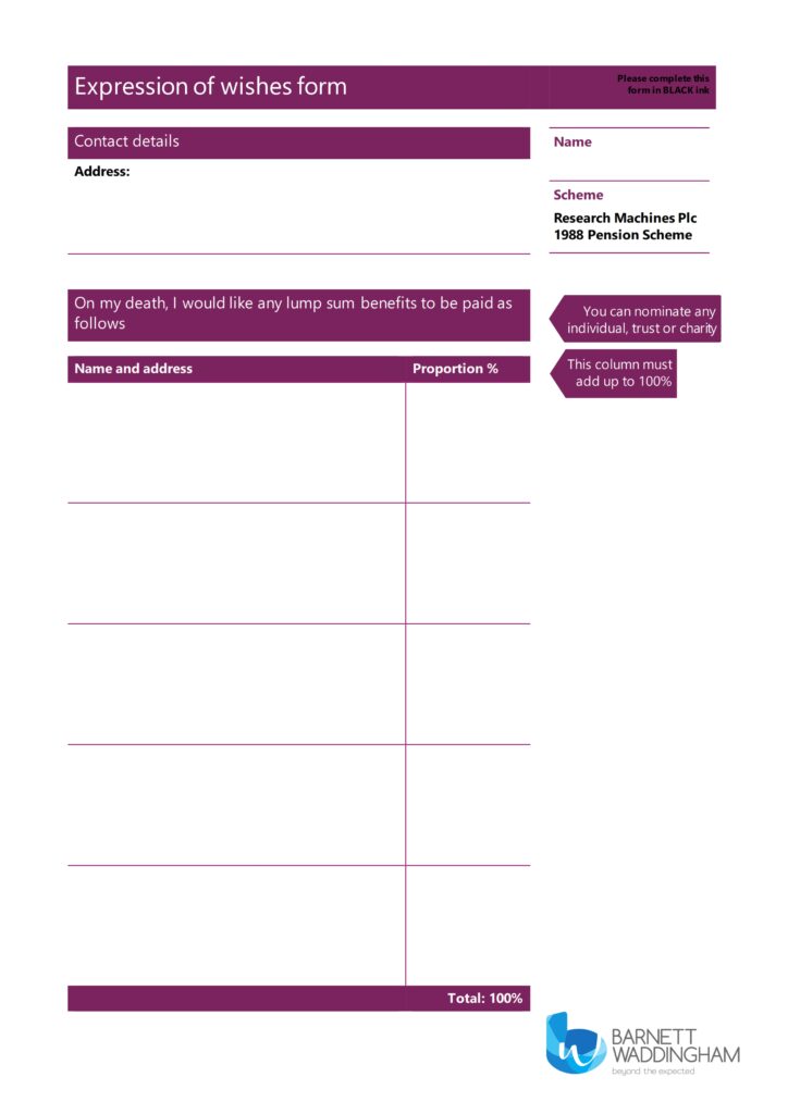 The Expression of Wish form enables you to indicate to the Trustee how you wish the benefit to be paid on your death.