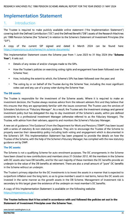 The Implementation Statement sets out the trustee’s implementation of the investment policies set out in the SIP over the year.